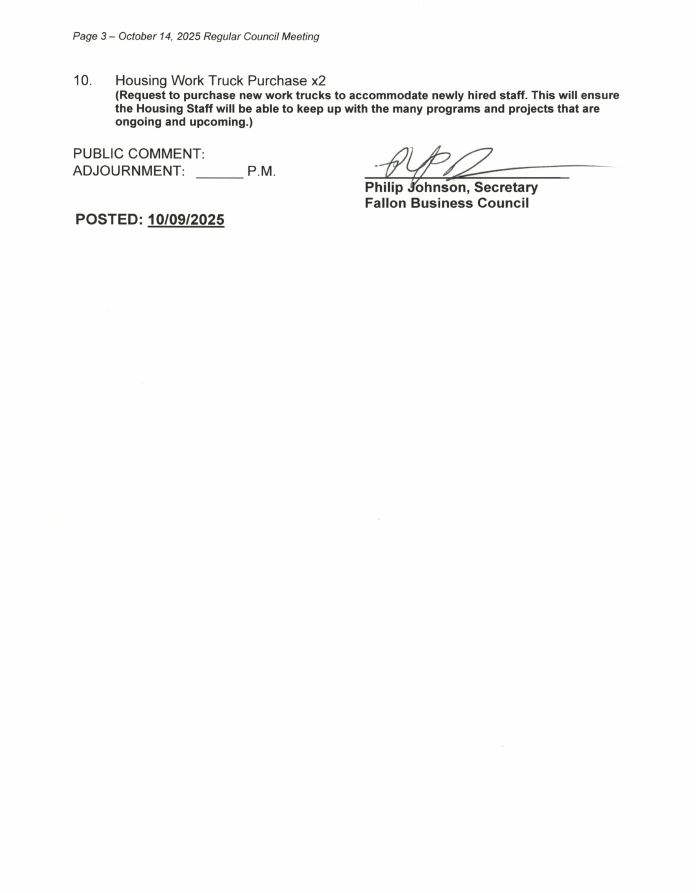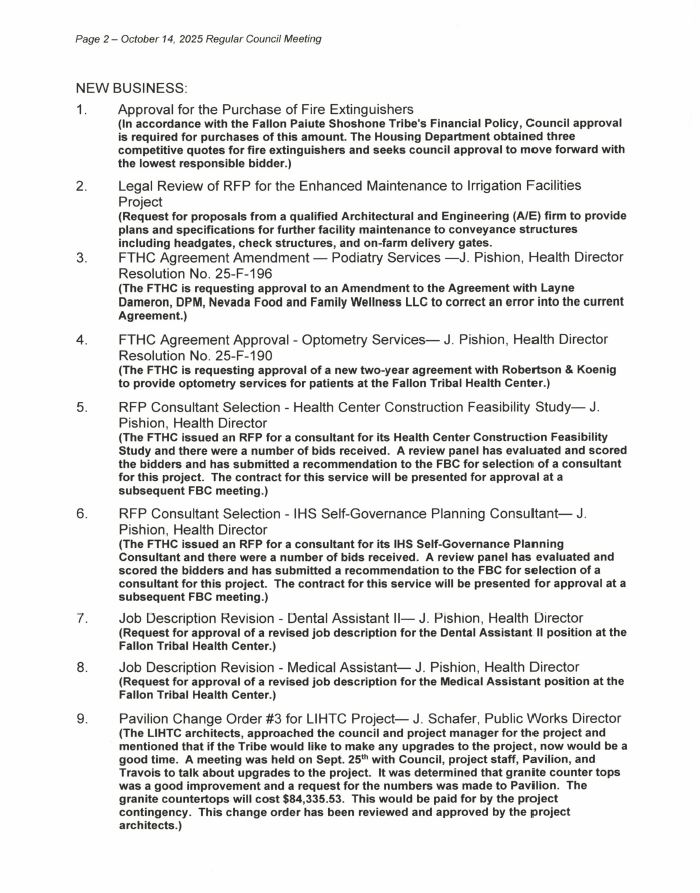 Regular Council Meeting Agenda – October 14, 2025